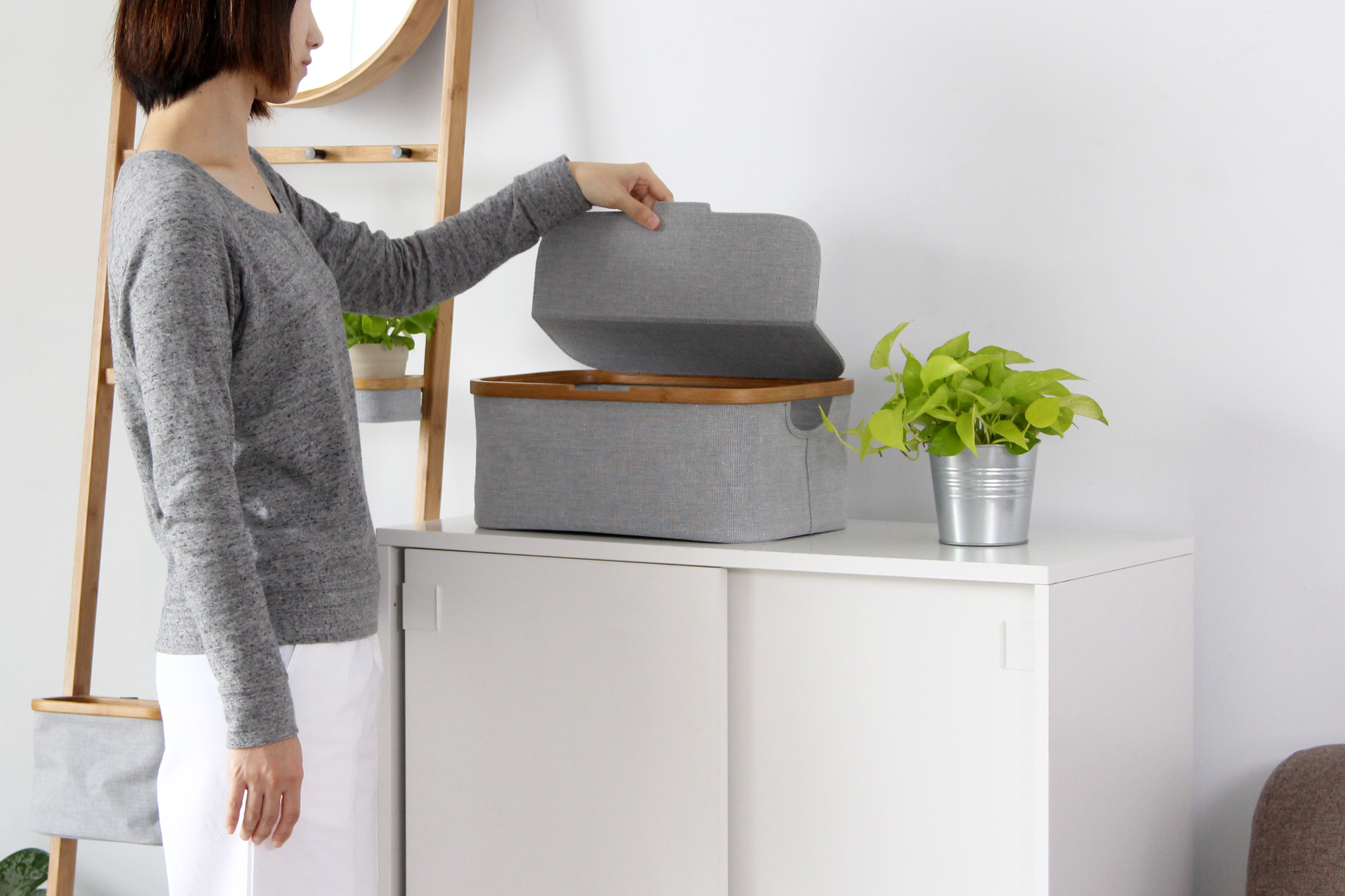 AKORE storage basket is an upgrade from one of Gudee’s classic products – FRASA. This new collection has two-way lid that makes it easy to open in closet or lower shelf. The cover also provides protection from dust and can pile up other baskets till 2kg.