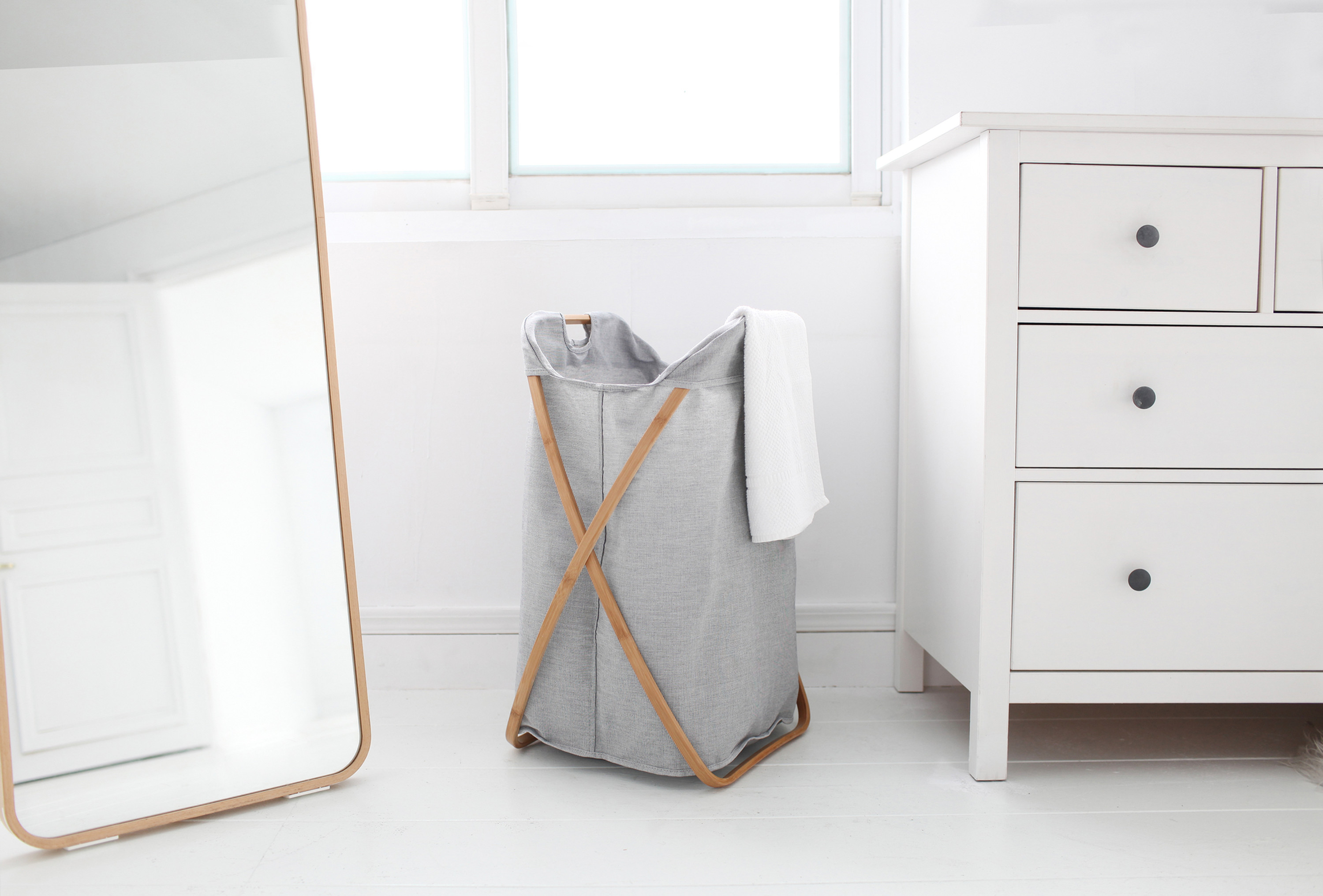可千萬別小看此款可容納100L衣物的洗衣籃,除了髒衣外也能當作收納籃放置毛巾、雜物或任何你想收納的東西。其輕巧的竹材框架以及特殊聚酯纖維布料能讓你輕鬆地提起移動。可折疊的X框架能在不使用的情況下收起並節省空間。此外,他簡單優雅的設計能與各種裝潢風格搭配,顯得相得益彰。