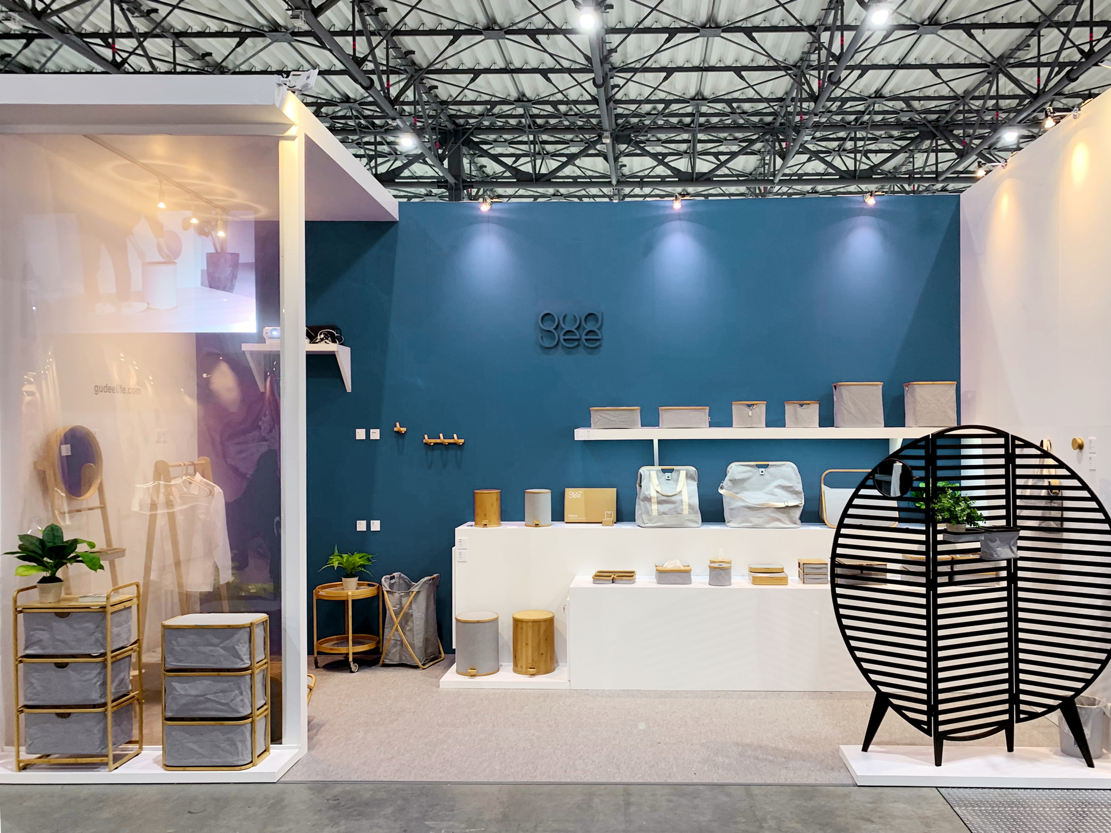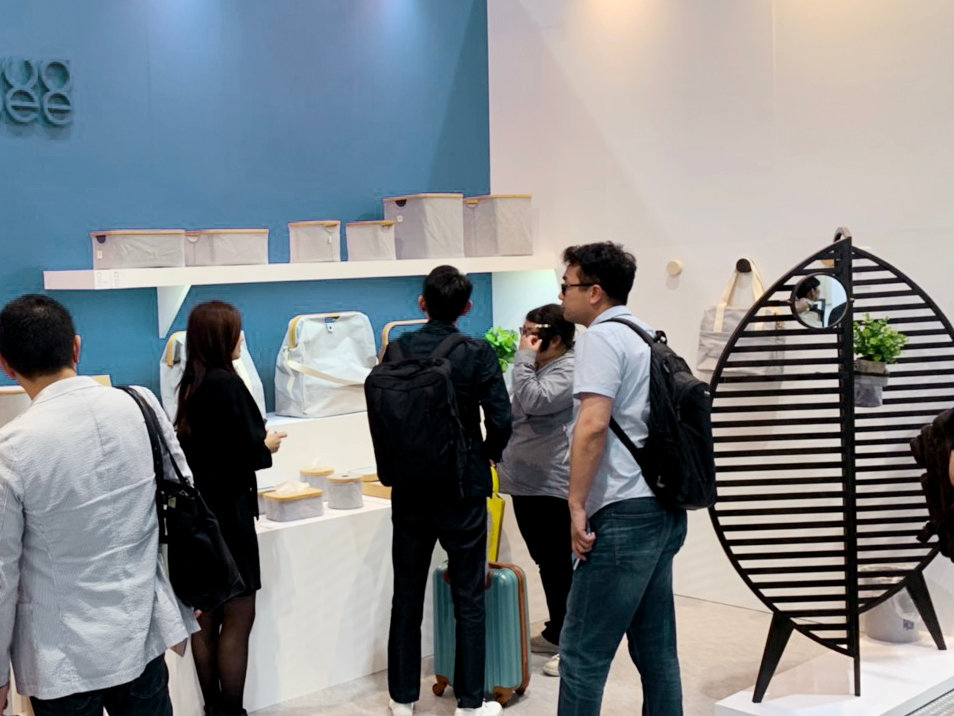 2019 Design Tokyo was held at Tokyo Big Sight, Japan. From the first day of the trade show, Gudee welcomed many visitors and companies to visit its 2019 new collection at booth No. A17-48. Along with our classic storage series which made of natural bamboo and muted tone fabric, we launched ESOBI tissue box and AKORE storage basket collection. Both products have our patent design that make it easy to set up and fold for space-saving. We also brought SPIRO hook which presents our delicate craftsmanship using bamboo material. OTAKA screen has high inquiry from local shop owner, because this eye-catcher is adaptable to fit into small spaces and fulfill different storage function.