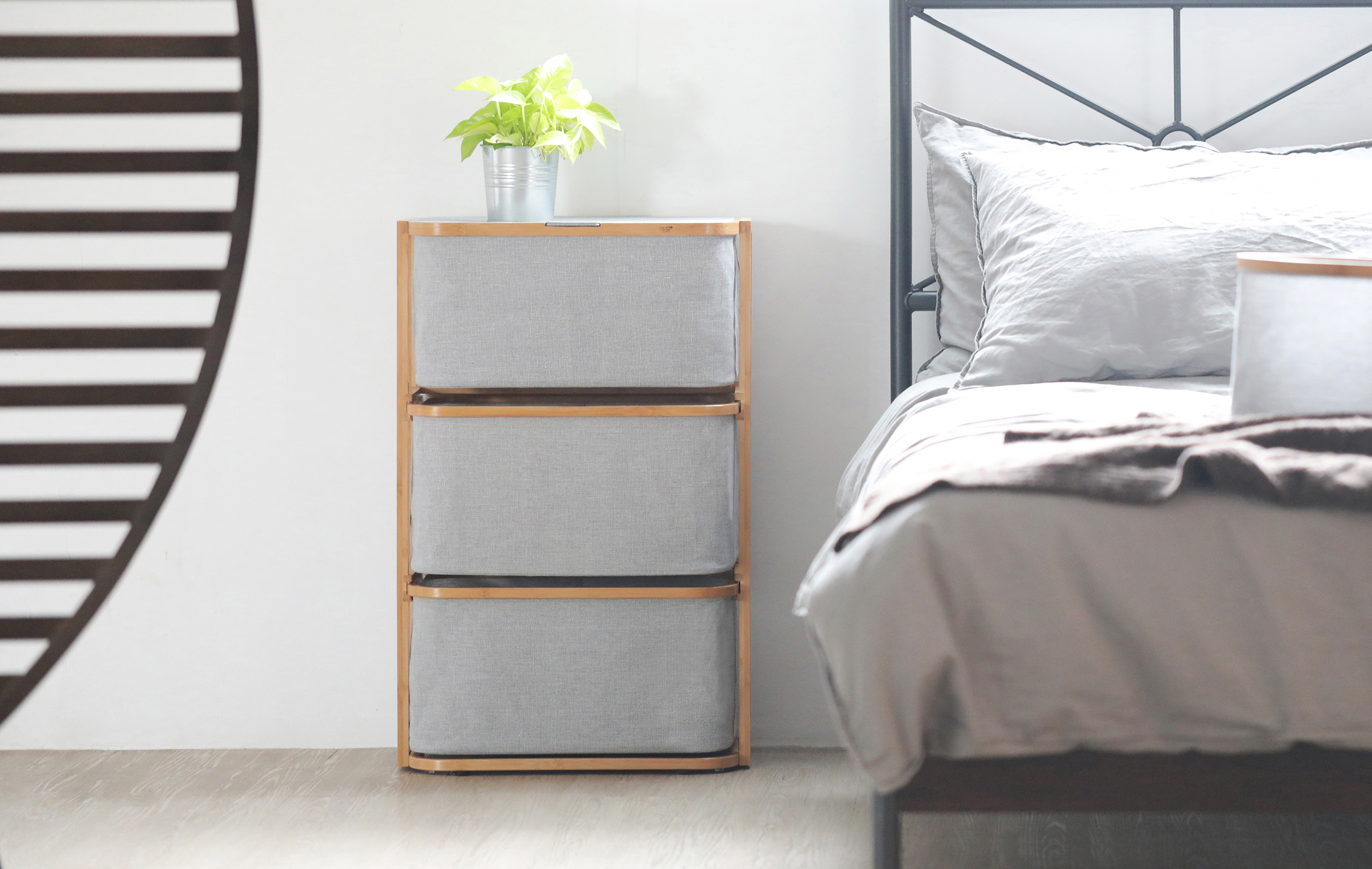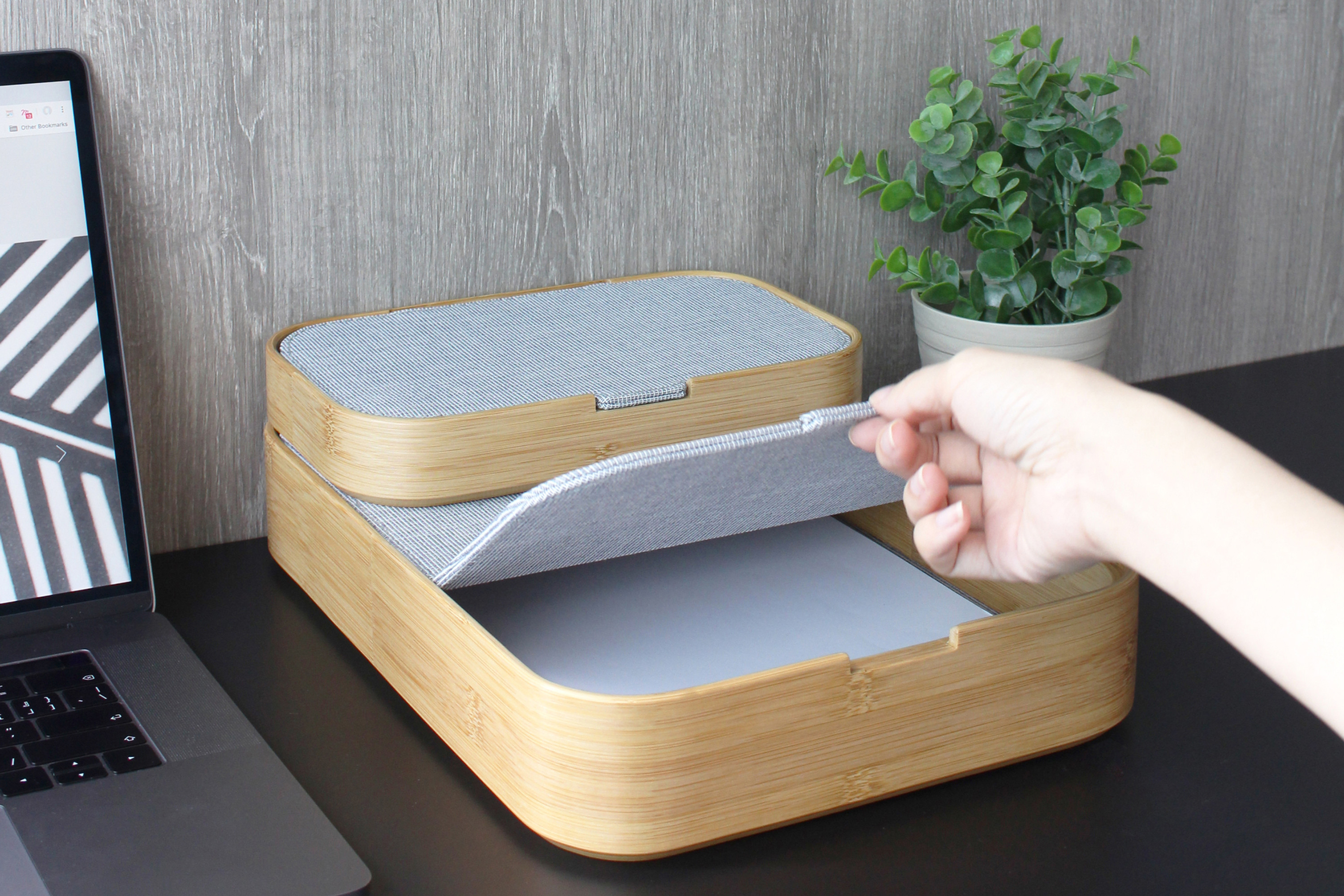 Gudee focuses on bringing warmth into living space by using more natural material. This season, we continuously enhance the craftsmanship of bamboo and level up its possibility in curved shape and aesthetic pleasure. We have launched three brand-new products: SPIRO hook, CELIA storage drawer, and ODDI stackable desktop organizer. All Gudee innovations are created from observations in daily life, for a better living. The exquisite details on fabric lid and rounded edges of bamboo frame bring simple and delicate look into interior.