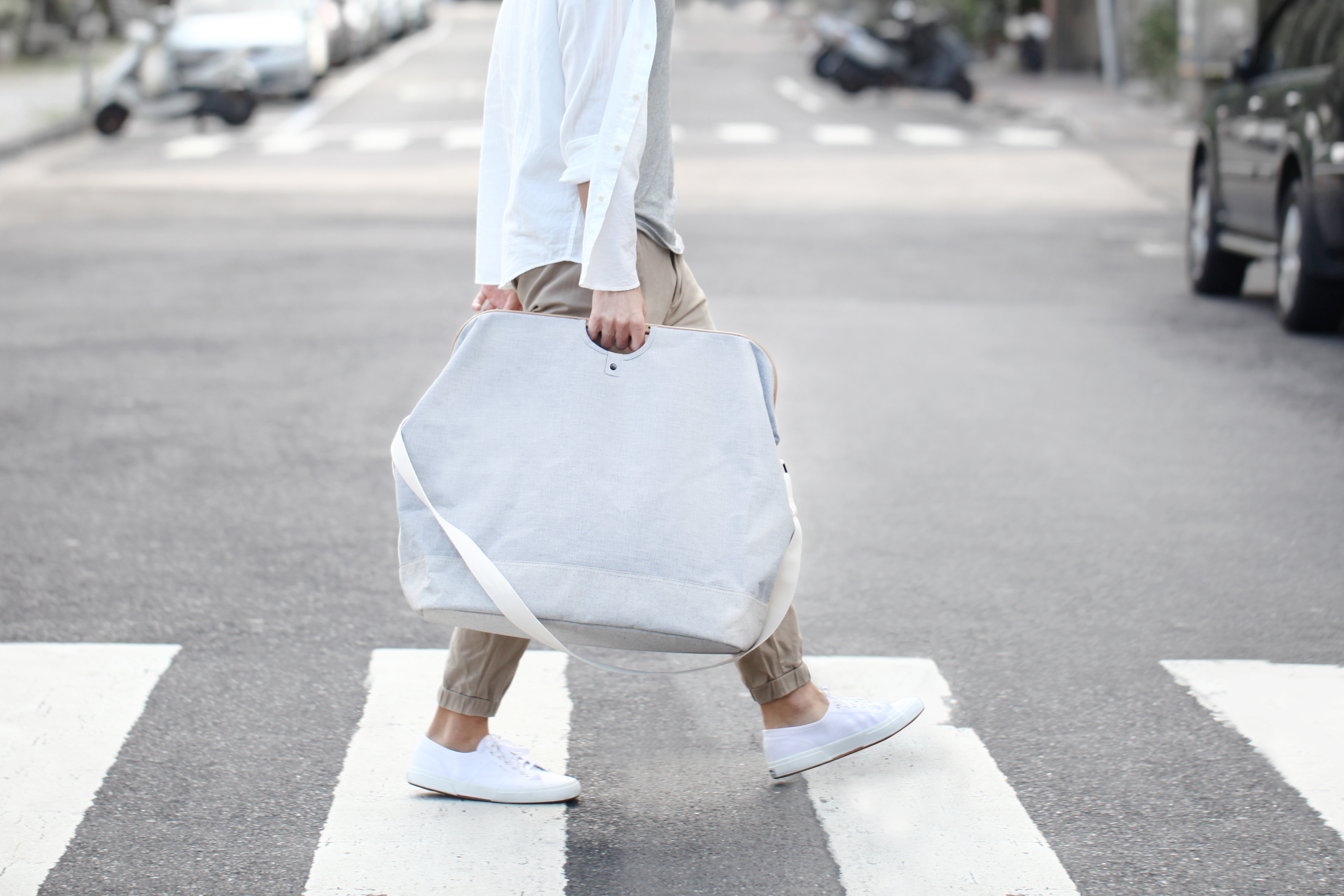 UROKI髒衣收納包有兩種版本可供攜帶: 手提包與肩背包。超大容量能攜帶大量衣物,讓你輕鬆穿梭在住家與洗衣店之間。竹框和布料的結合、顏色與設計都帶出簡潔自然的生活態度。