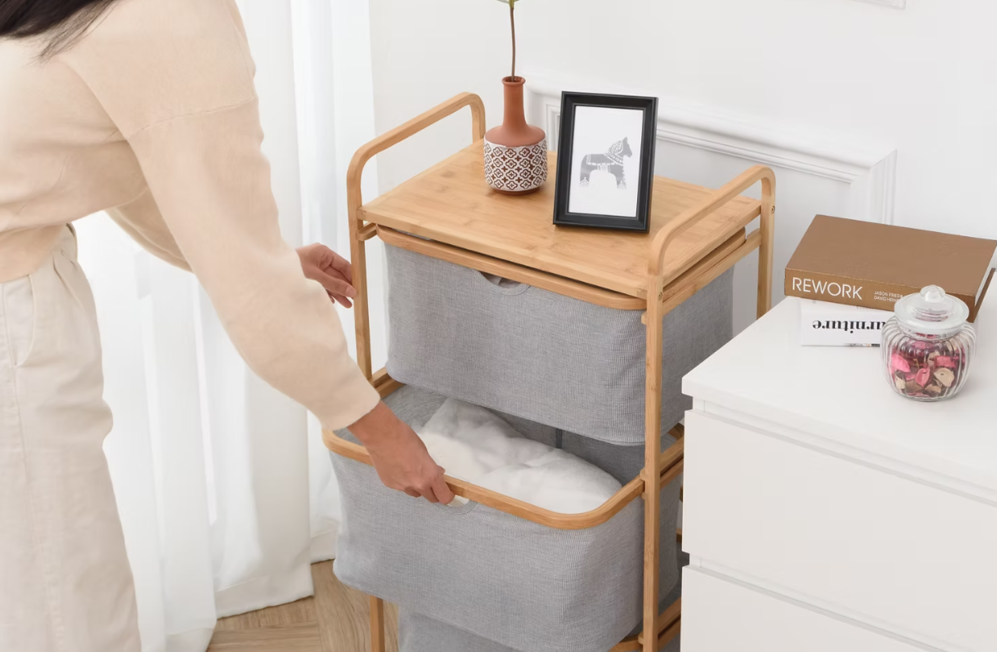 CESER is a fabric 3-drawer storage organizer with bamboo frame. It is perfect for storing and organizing essential dresser items such as folded clothing, sweaters, pants, socks, scarves and accessories. You can also place it in the entryway or any other space in your home