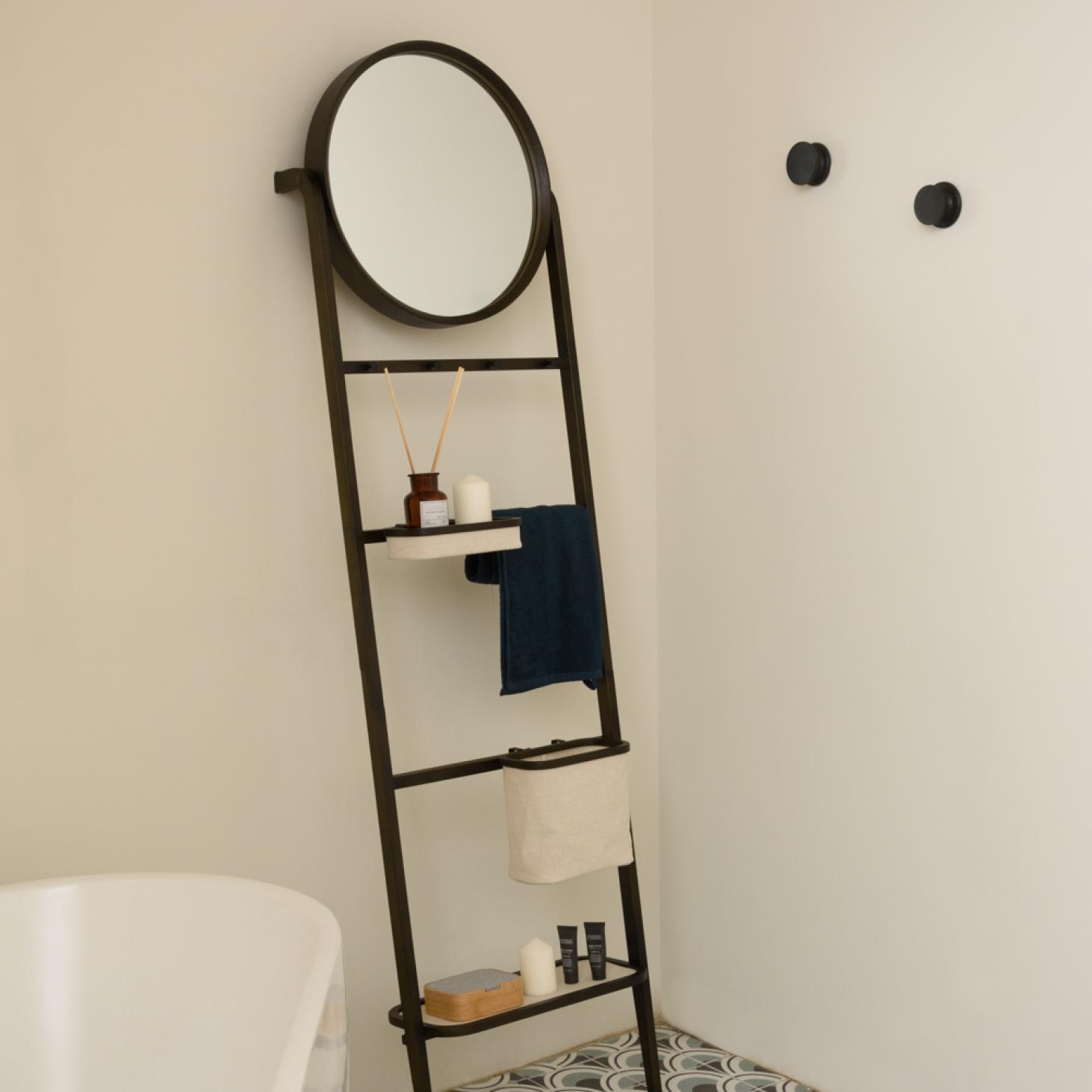 Leaning srorage rack with mirror