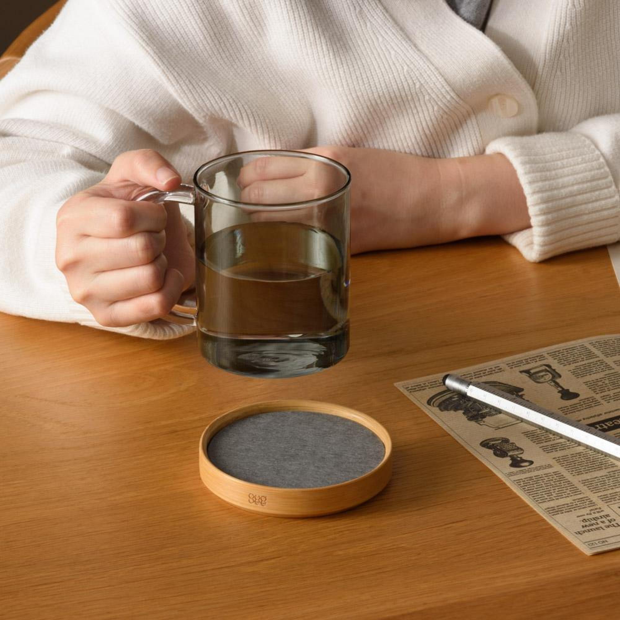 A reliable place for your mug. With water-absorption capabilities of diatomaceous earth and elegant color of bamboo holder, TRIVI coaster is a fine piece on desktop, coffee table and kitchen bar.