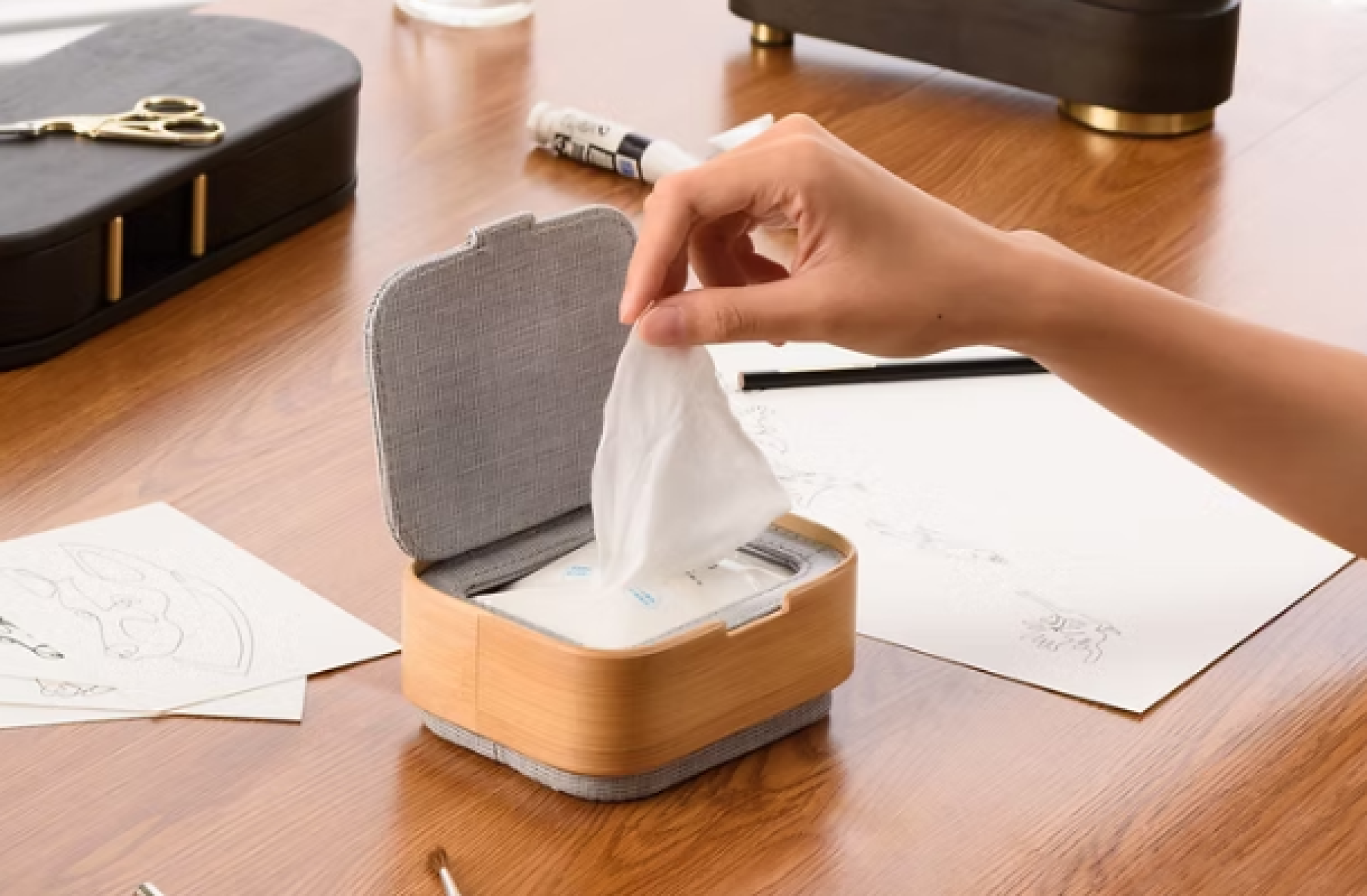 ESOBI wipes case is perfect for home use. Hard bamboo storage box graces your homely room. It features adjustable container for wet wipes. Inside the fabric cover has PE waterproof coating in order to prevent mold and get away from dirt.