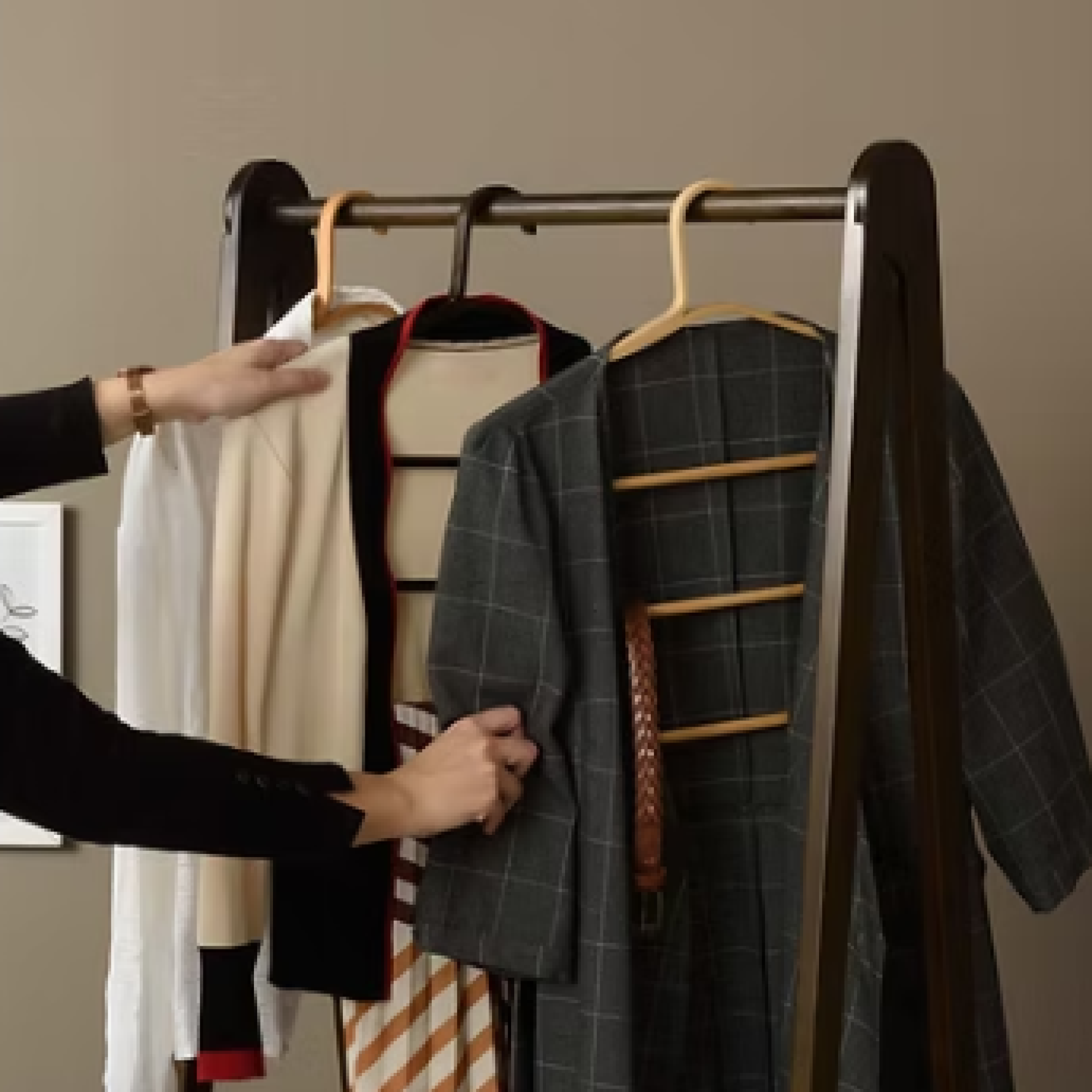 A more organized closet where every piece of clothing has its own dedicated spot. The Cakon 3 tiers Trouser hanger combines the natural beauty of bamboo with exceptional functionality. It not only easily holds pants but also organizes skirts, scarves, and other items, meeting your diverse storage needs.